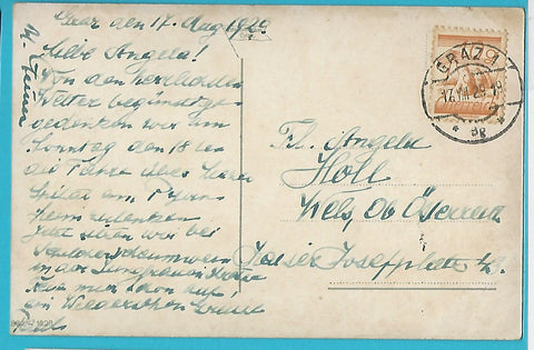 AK Graz. Mur. Schlossberg. (1928) Gelaufen. Kleinformat. Verlag: Strohschneider. Nummeriert: 862. Zustand: leicht bestoßen.