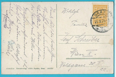 AK Graz mit den 3 Brücken. (1922/23) Ungelaufen. Kleinformat. Verlag: Sussitz. Nummeriert: 05645/514. Zustand: Ecken mit Steckalbumdruckspuren, linkes oberes Eck geknickt.