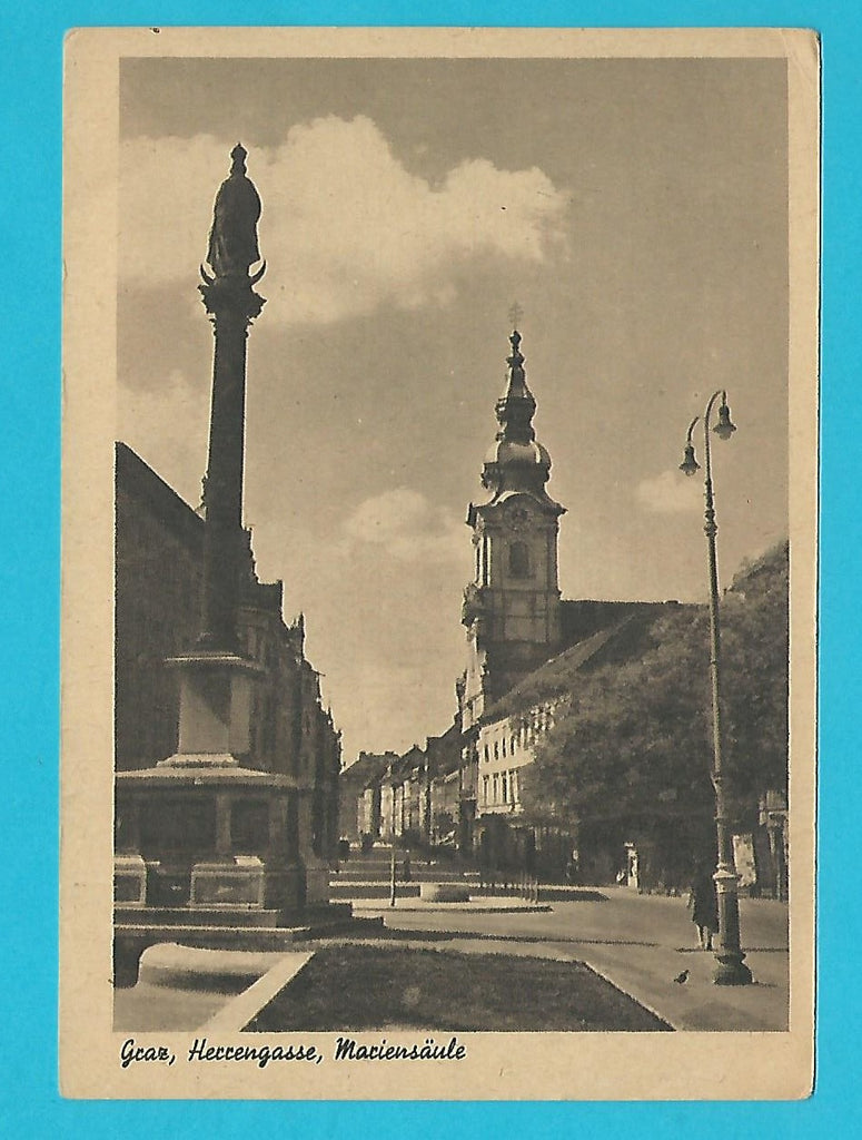 AK Graz. Herrengasse, Mariensäule. (1946) Ungelaufen. Großformat. Verlag: Monika. Nummeriert: 107. Zustand: obere Ecken geknickt.