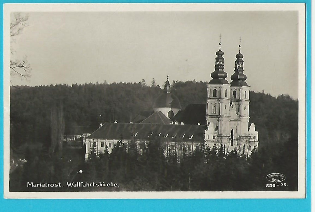 AK Mariatrost. Wallfahrtskirche. (1930-31) Gelaufen. Kleinformat. Verlag: Frank. Nummeriert: 526-25. Zustand: leichte Läsuren.