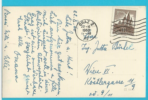AK Graz, gemaltes Haus. Gelaufen. Kleinformat. Verlag: Sketh. Zustand: Knick am oberen Rand.
