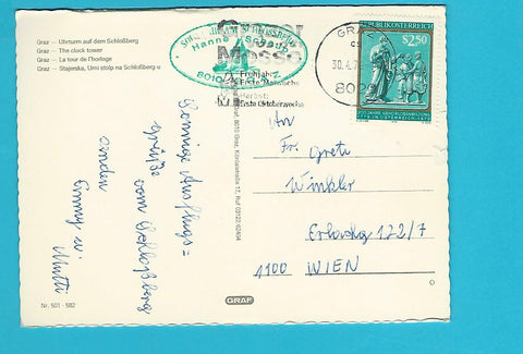 AK Graz. Uhrturm auf dem Schloßberg. Gelaufen. Großformat. Verlag: Graf. Nummeriert: 501-582. Zustand: gut, am oberen Rand angestoßen.