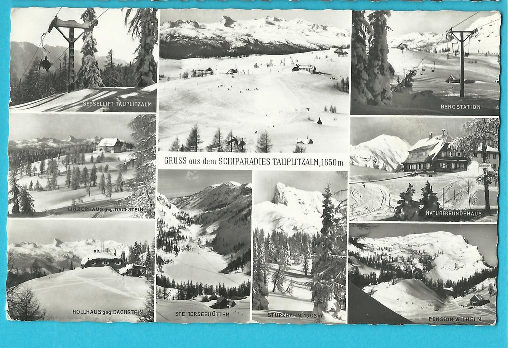 AK Gruß aus dem Schiparadies Tauplitzalm. (1961) Gelaufen. Kleinformat. Verlag: Ledermann. Zustand: gut.