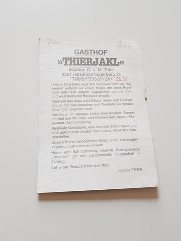 AK Hatzendorf-Ederberg 25. Gasthof Thierjakl. Inhaber: G. u. M. Thier. Großformat. Zustand: obere Ecken geknickt.