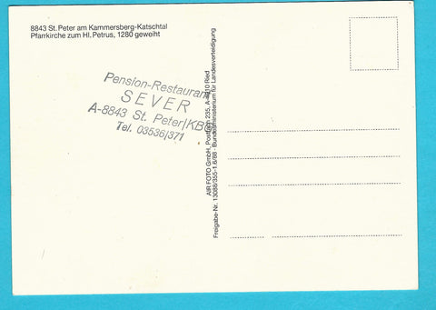 AK St. Peter am Kammersberg-Katschtal. Pfarrkirche zum Hl. Petrus. Ungelaufen. Großformat. Verlag: Air Foto. Zustand: leicht fleckig, linkes oberes Eck angeknickt.