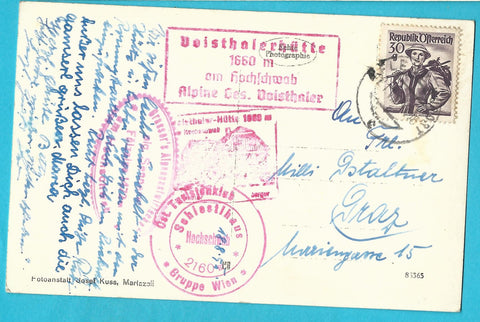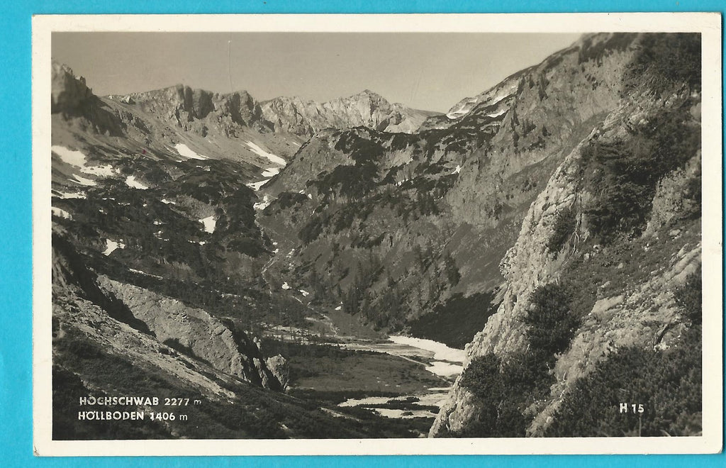 AK Hochschwab Höllboden. Gelaufen. Kleinformat. Verlag: Kuss. Nummeriert: H 15. Zustand: rechtes oberes Eck geknickt.