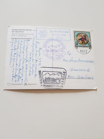 AK Ignaz Mattis-Hütte am Giglachsee. Pächter: Reinhard Keinprecht. Mit Rotmandlscharte. Gelaufen. Großformat. Zustand: leicht bestoßen.