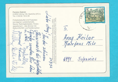 AK Irdning 132. Pension Gabriel. Gelaufen. Großformat. Verlag: Hruby. Nummeriert: 10847. Zustand: Knicke.