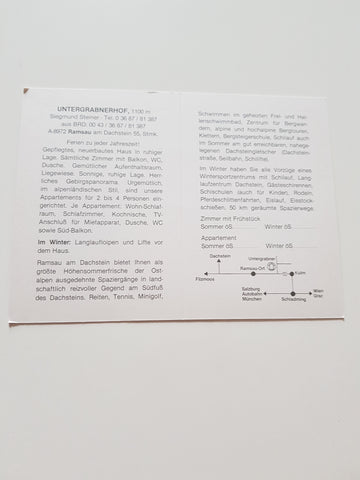 Karte Ramsau am Dachstein. Untergrabnerhof. Siegmund Steiner. Großformat (Faltkante) Zustand: gut.