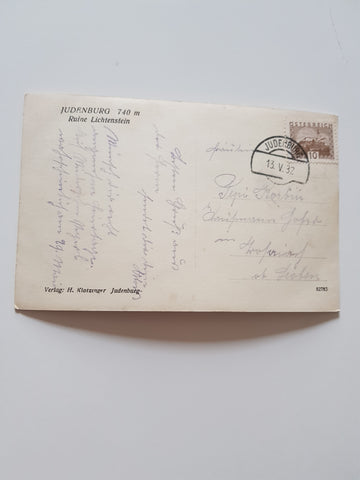 AK Judenburg. Ruine Lichtenstein. Gelaufen. Kleinformat. Verlag: Klotzinger. Zustand: gut, leicht bestoßen.