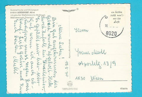 AK Judendorf. Gelaufen, aber Briefmarke wurde entfernt. Großformat. Verlag: Alpine Luftbild. Nummeriert: FÖ 56774. Zustand: stärker bestoßen.