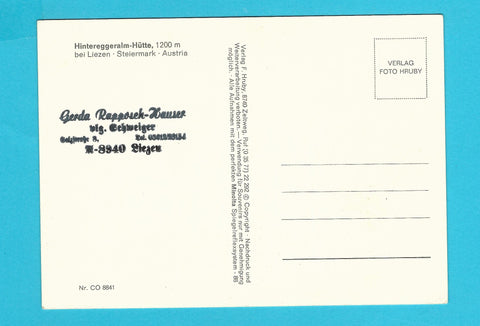 AK Hintereggeralm-Hütte bei Liezen. Ungelaufen. Großformat. Verlag: Hruby. Nummeriert: 8841. Zustand: rechtes unteres Eck geknickt, sonst leicht bestoßen.