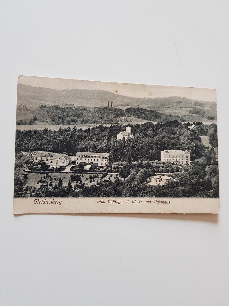 AK Gleichenberg. Villa Höflinger II, III, IV und Waldhaus. Gelaufen, aber Briefmarke wurde entfernt. Kleinformat. Nummeriert: 1828. Zustand: gut.