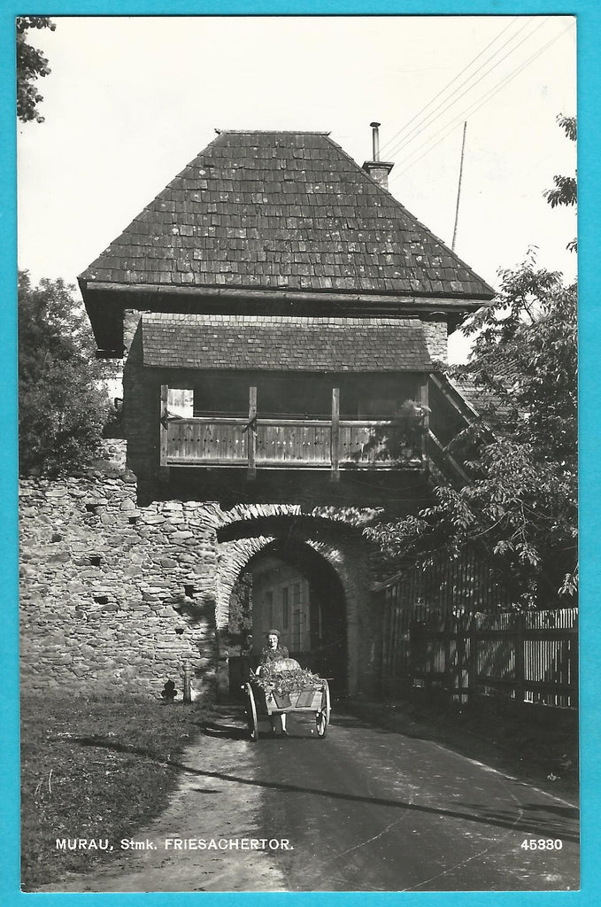 AK Murau. Friesachertor. (1956) Gelaufen. Kleinformat. Verlag: Ledermann. Nummeriert: 45330. Zustand: gut.