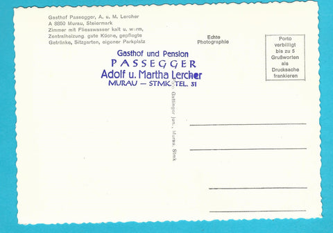AK Murau. Gasthof Passegger. A. u. M. Lercher. Ungelaufen. Großformat. Verlag: Gattinger. Zustand: gut.