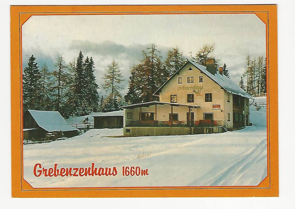 AK Grebenzenhaus. Pächter: Fam. Mittelhofer. St. Lambrecht. (1985) Ungelaufen. Großformat. Verlag: Hruby. Nummeriert: 9044. Zustand: rechtes oberes Eck geknickt, sonst O.k.