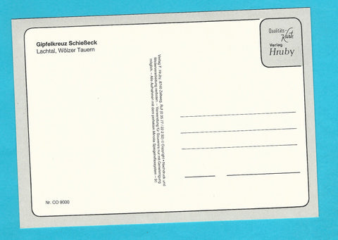AK Gipfelkreuz Schießeck. Lachtal. Wölzer Tauern. (1991) Ungelaufen. Großformat. Verlag: Hruby. Nummeriert: 9000. Zustand: gut.