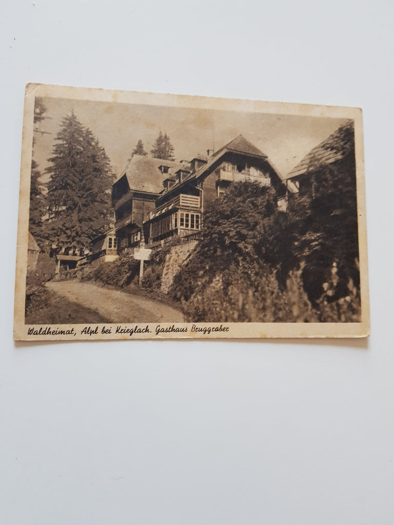 AK Waldheimat, Alpl bei Krieglach. Gasthaus Bruggraber. Gelaufen. Großformat. Verlag: Monika. Nummeriert: A 3. Zustand: Ecken angenickt, leichte Knicke.