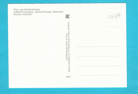 AK Pfarr- und Wallfahrtskirche Frauenberg - Maria Rehkogel. Vierzehn Nothelfer. Ungelaufen. Großformat. Verlag: St. Peter. Nummeriert: 5000. Zustand: gut.