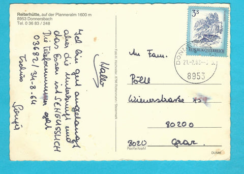 AK Planneralm. Reiterhütte. Donnersbach. Gelaufen. Großformat. Verlag: Hochreiter. Zustand: stärker bestoßen.
