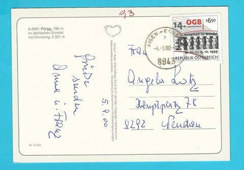 AK Pürgg. Gelaufen. Großformat. Verlag: Hruby. Nummeriert: 12252. Zustand: gut.