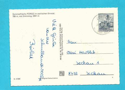 AK Pürgg mit Grimming. Gelaufen. Großformat. Verlag: Pietsch. Nummeriert: 81689. Zustand: gut.