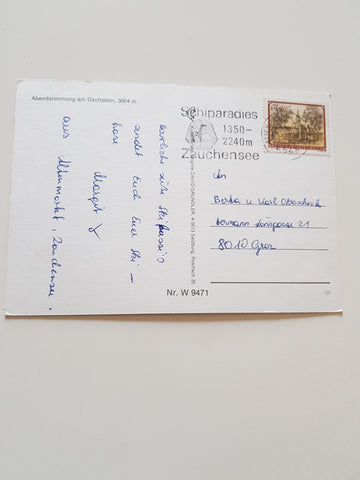 AK Alpenglühen am Dachstein. Gelaufen. Großformat. Verlag: Cosy. Nummeriert: 9471. Zustand: gut.