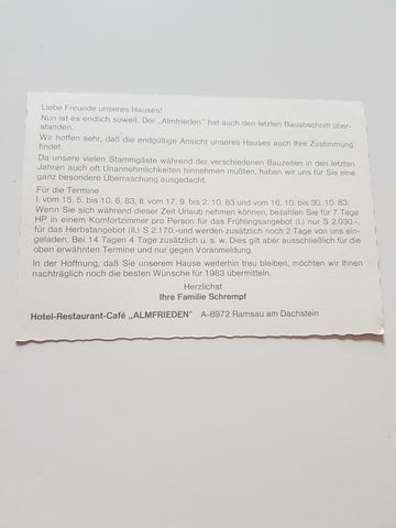 AK Ramsau am Dachstein. Hotel Restaurant Cafe Almfrieden. Gelaufen. Großformat. Zustand: gut.