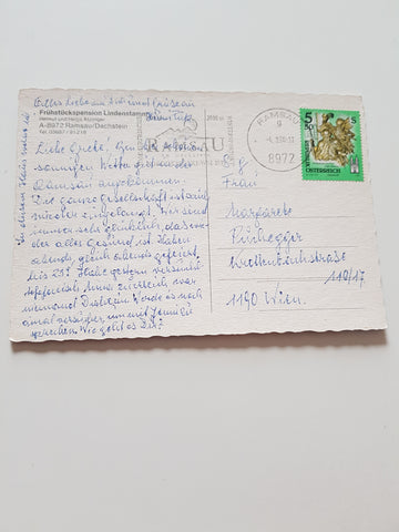 AK Ramsau am Dachstein. Frühstückspension Lindenstamm. Helmut und Helga Atzlinger. Gelaufen. Großformat. Zustand: gut, leicht bestoßen.