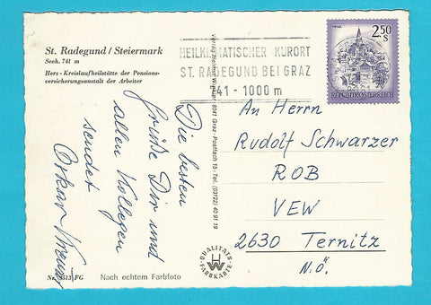 AK St. Radegund. Herz-Kreislaufheilstätte der PVA. Gelaufen. Großformat. Verlag: Winkler. Nummeriert: 3513. Zustand: gut, rechtes unteres Eck geknickt.