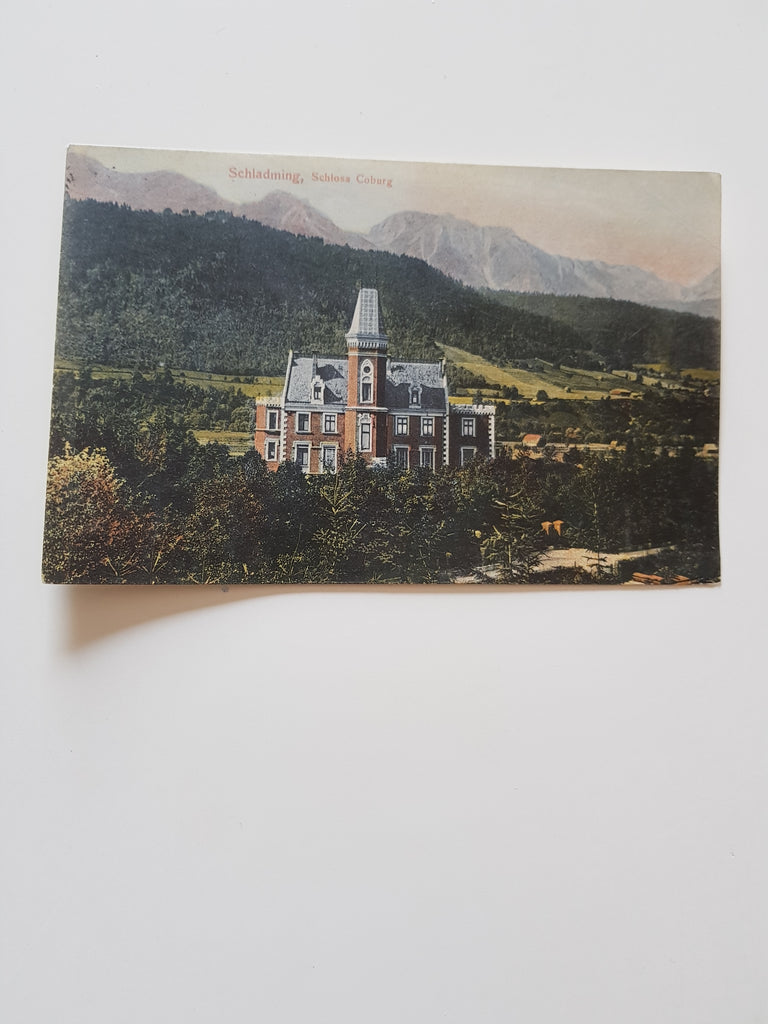 AK Schladming, Schloss Coburg (Fragment) rechtes oberes Eck geknickt.