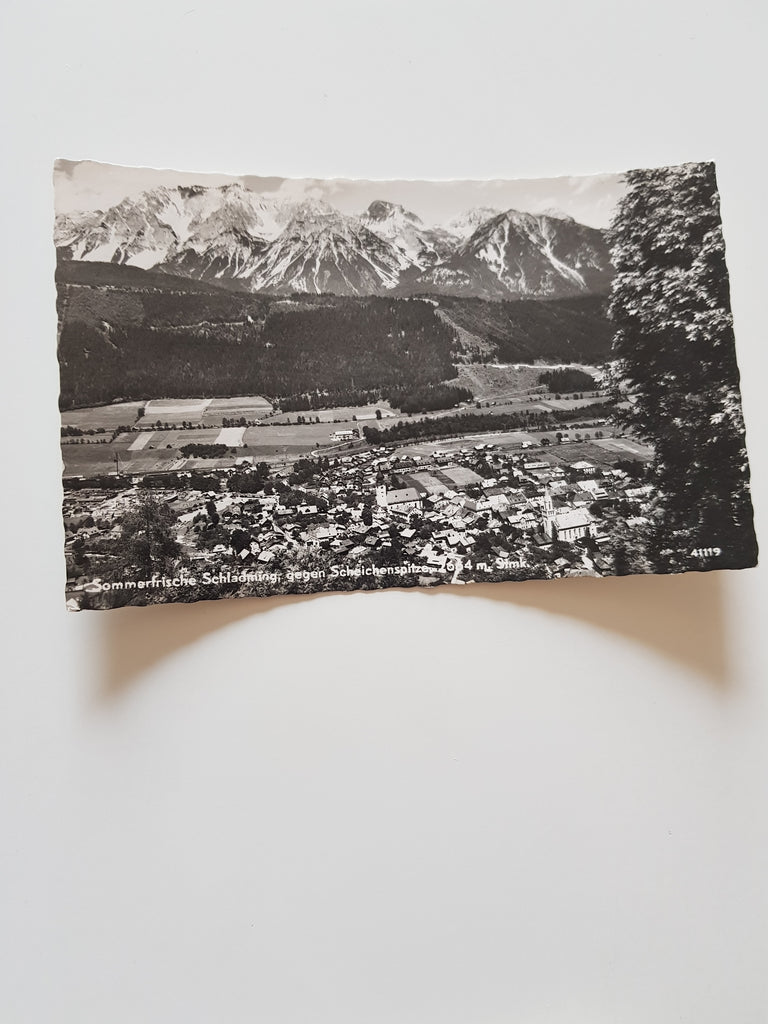 AK Schladming gegen Scheichenspitze. Gelaufen. Kleinformat. Verlag: Ledermann. Nummeriert: 41119. Zustand: gut.