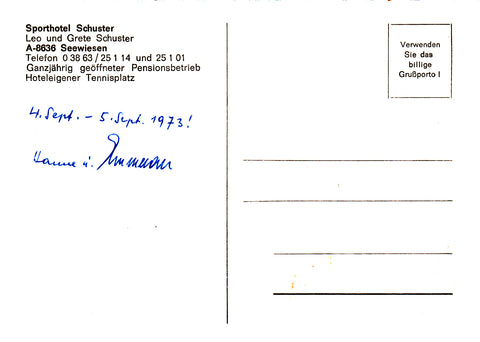 AK Seewiesen. Sporthotel Schuster. Leo und Grete Schuster.