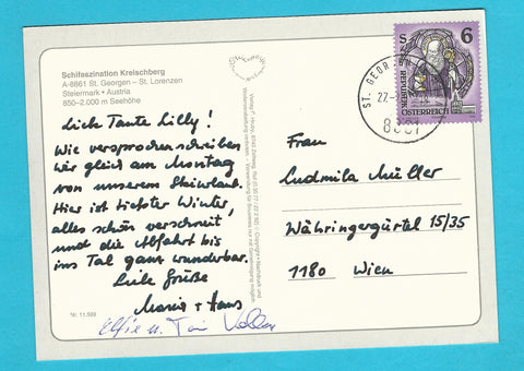 AK Kreischberg. St. Georgen - St. Lorenzen. Gelaufen. Großformat. Verlag: Hruby. Nummeriert: 11599. Zustand: linkes oberes Eck geknickt.