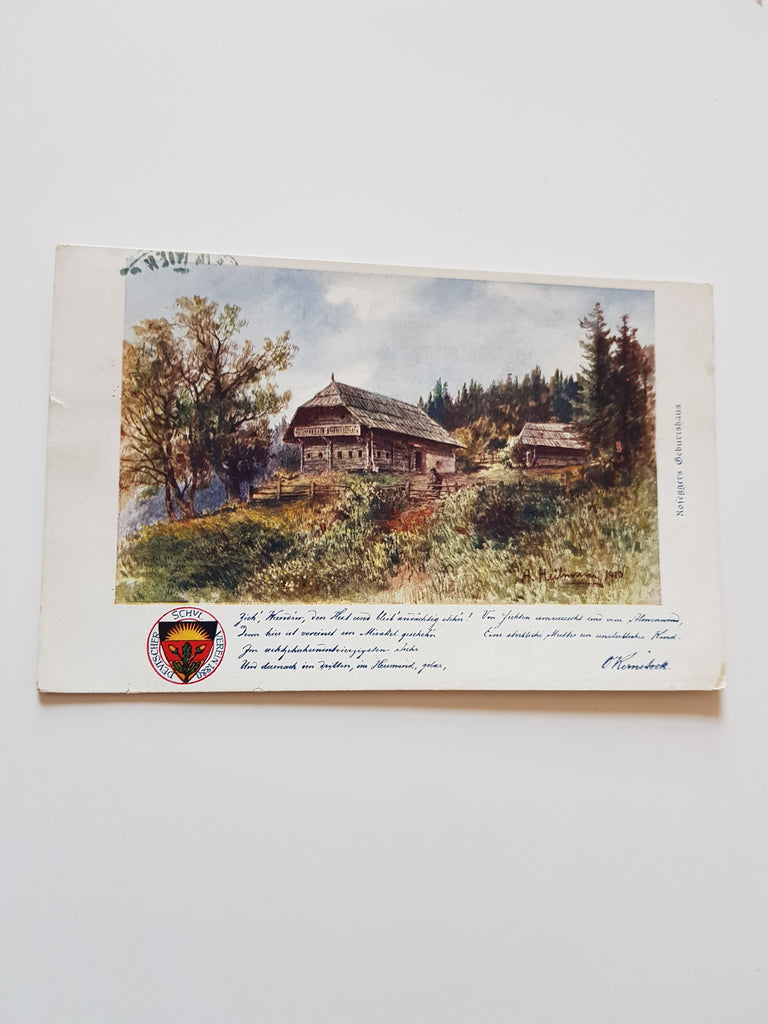 AK Roseggers Geburtshaus. Gelaufen. Kleinformat. Verlag: Deutscher Schulverein. Nummeriert: 144. Zustand: gut, leicht bestoßen.