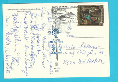 AK Wallfahrtskirche Frauenberg. Gelaufen. Großformat. Verlag: KK XX. Nummeriert: 8182. Zustand: gut, linkes oberes Eck geknickt.