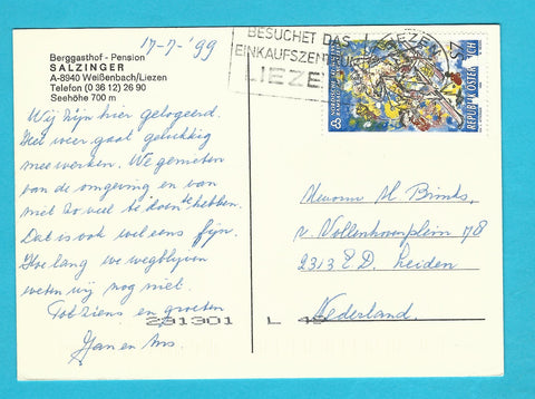 AK Weißenbach bei Liezen. Berggasthof Pension Salzinger. Gelaufen. Großformat. Zustand: Knick am linken Rand, linkes unteres Eck geknickt.