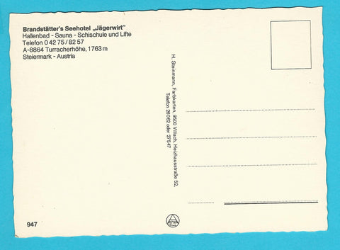 AK Turracherhöhe. Brandstätter's Seehotel Jägerwirt. Ungelaufen. Großformat. Verlag: Steinmann. Nummeriert: 947. Zustand: gut.