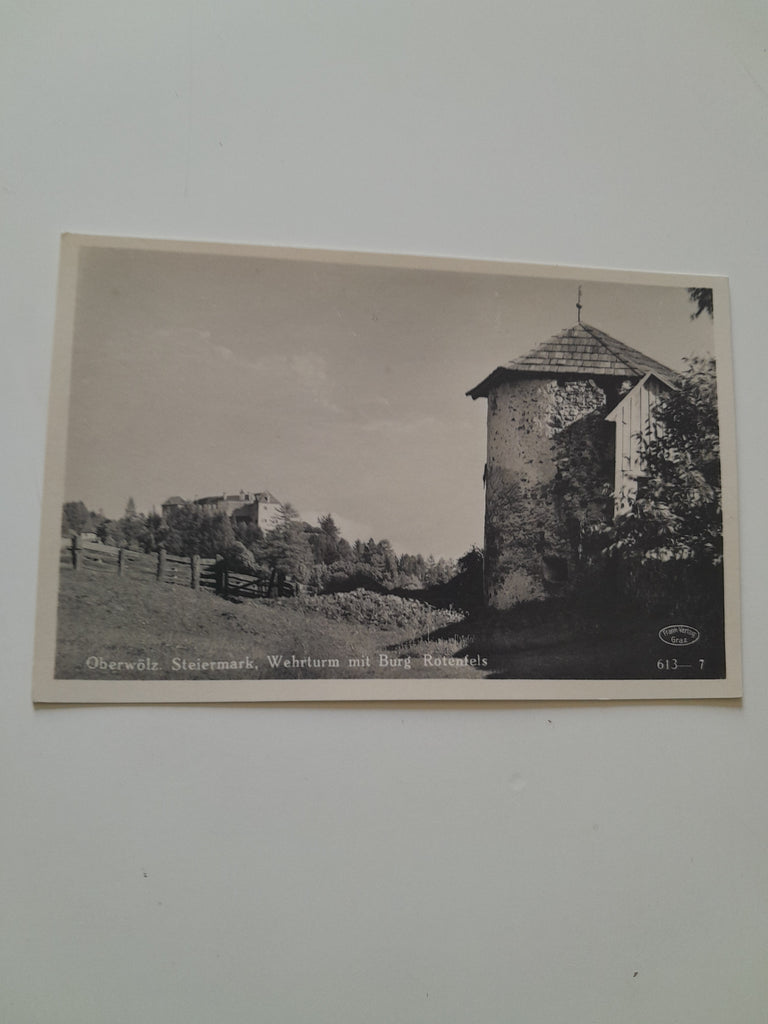 AK Oberwölz Wehrturm mit Burg Rotenfels. (1931-32) Ungelaufen. Kleinformat. Verlag: Frank. Nummeriert: 613-7. Zustand: gut.