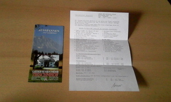 Prospekt Gröbming. Gasthof Pension Wieser. Tieschenhof. Josef und Waltraud Wieser. Mitterberg-Süd Dorf 138. mit Informationsblatt. Format: 10 x 21 cm. Gestaltung und Druck: Wallig, Gröbming. Foto: Handl. Zustand: gut.