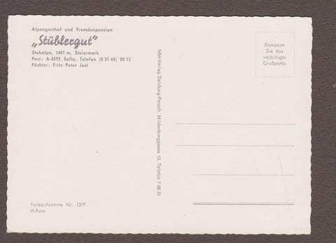 AK Alpengasthof und Fremdenpension Stüblergut. Stubalpe. Salla. Ungelaufen. Großformat. Verlag: MM.Nummeriert: 1379. Zustand: linkes unteres Eck geknickt, Oberfläche leicht knittrig.