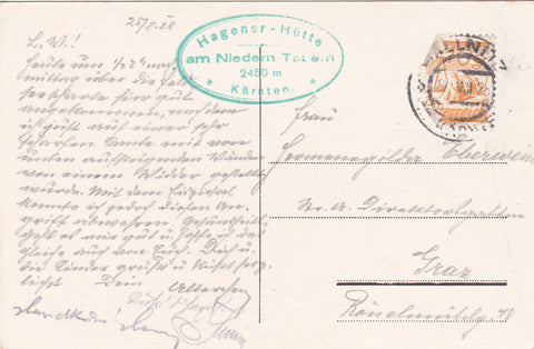 AK Auf der Feldseescharte zwischen Hagener und Duisburger Hütte. Gelaufen 1928. Kleinformat. Zustand: gut, Ecken wenig angestoßen.