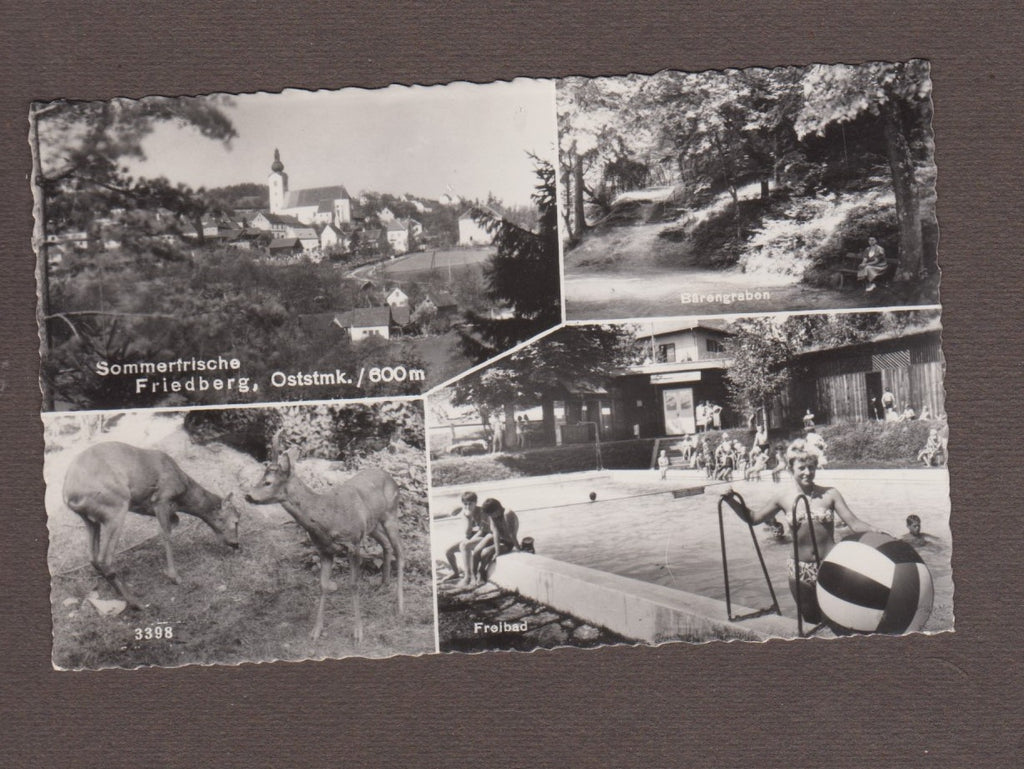 AK Friedberg. Bärengraben. Freibad. Gelaufen. Kleinformat. Verlag: Bayer. Nummeriert: 3398. Zustand: gut.