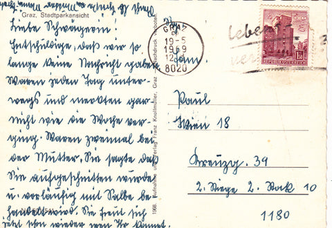 AK Graz. Stadtparkansicht. (1968) Gelaufen. Großformat. Verlag: Knollmüller. Nummeriert: 501-541. Zustand: gut.