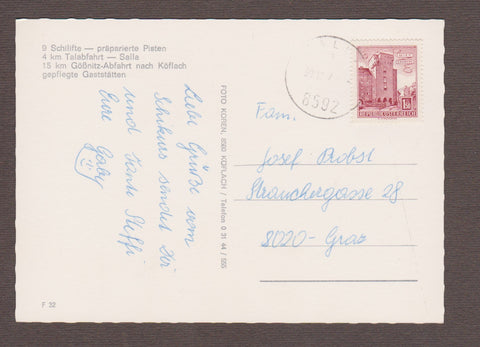 AK Skizentrum Gaberl. Gelaufen. Großformat. Verlag: Koren. Nummeriert: F 32. Zustand: gut.