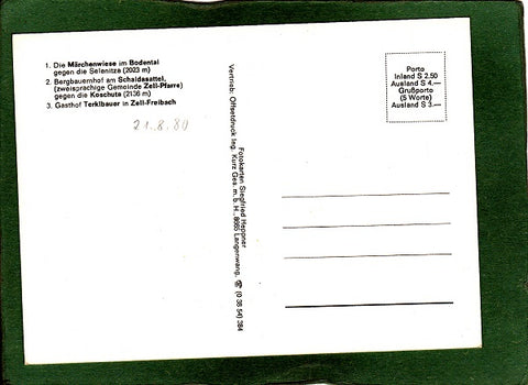 AK Welt der Kärntner Bergbauern in den Karawanken. 1. Märchenwiese im Bodental. 2. Bergbauernhof am Schaidasattel. 3. Gasthof Terklbauer in Zell-Freibach. Ungelaufen. Großformat. Verlag: Heppner. Zsutamd: gut.