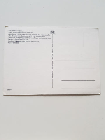 AK Tassenbach-Sillian. Gästehaus Aigner. Ungelaufen. Großformat. Verlag: Rubner. Nummeriert: 28267. Zustand: Ecken und am Rand angeknickt bzw. angestoßen.