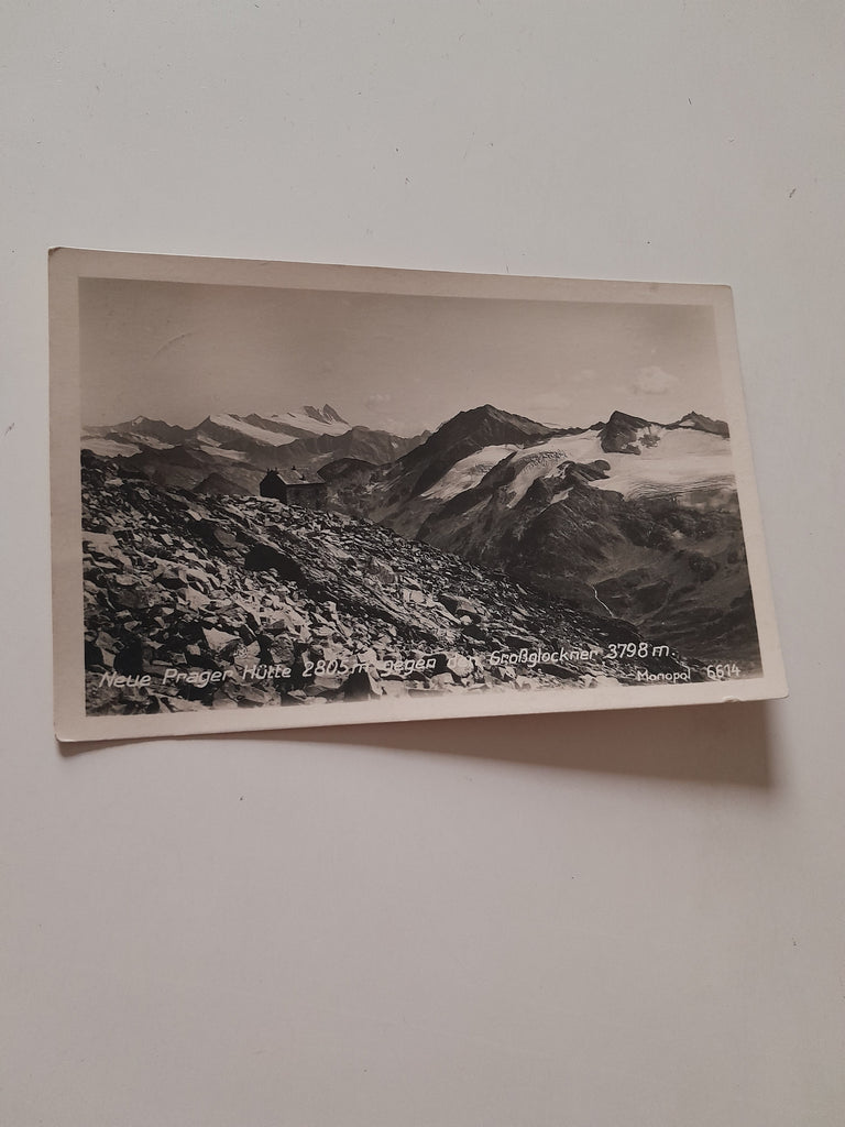 AK Neue Prager Hütte gegen den Großglockner. (1929) Gelaufen. Kleinformat. Verlag: Lottersberger. Zustand: gut.