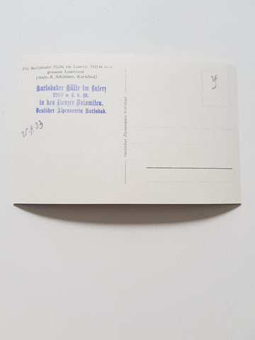 AK Die Karlsbader Hütte im Laserz vom grossen Laserzsee. Ungelaufen. Kleinformat. Zustand: gut.