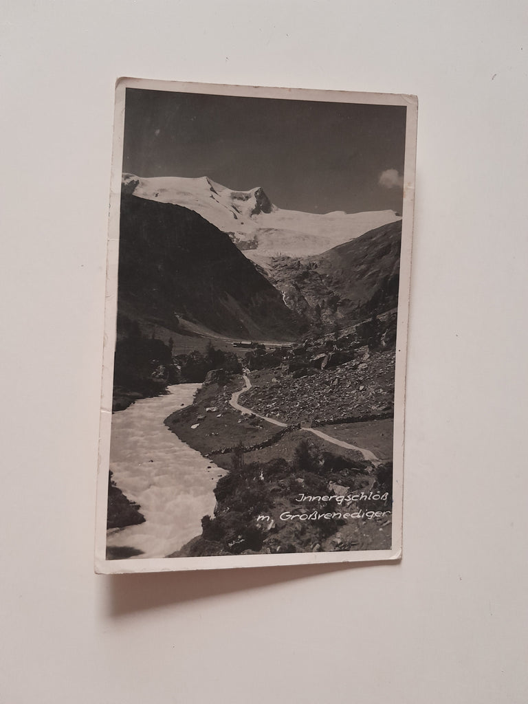 AK Innergschlöß mit Großvenediger. Gelaufen. Kleinformat. Verlag: Schneeberger. Zustand: stärker bestoßen.
